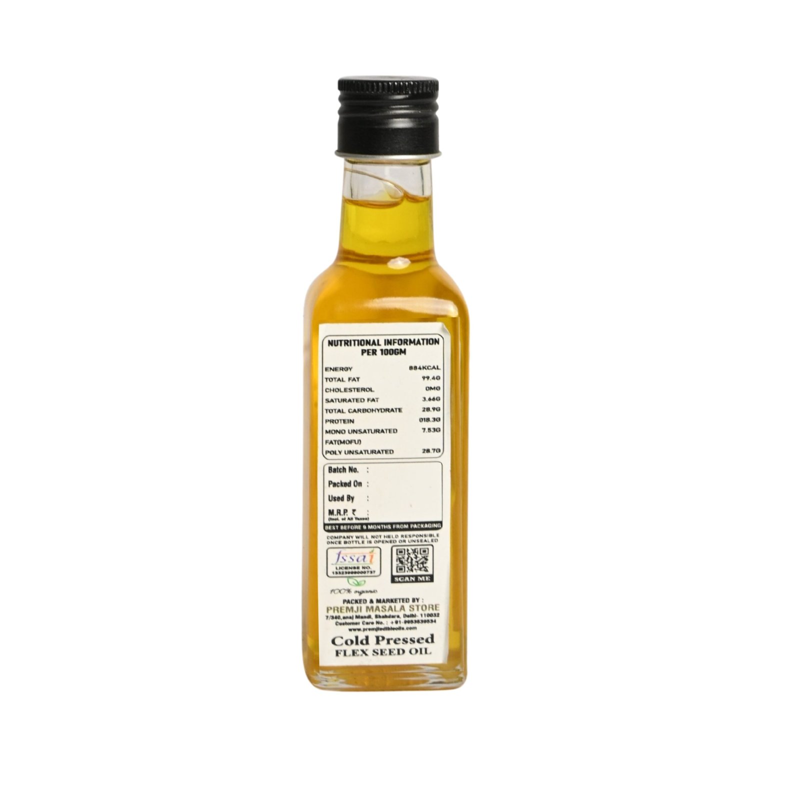 - 100% pure, unrefined and free from preservative/chemicals. Flax seeds are added to wooden part of cold press, oil is extracted pressing these seeds against wooden chuck/ kolhu at room temperature.